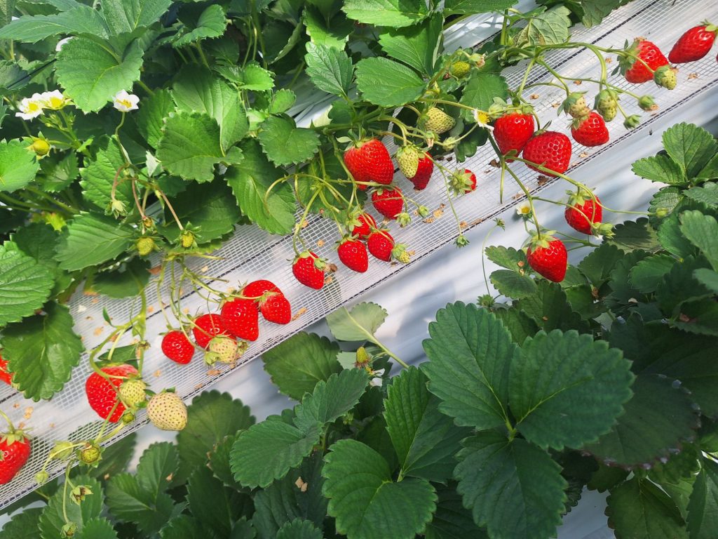 区画の赤く色付いたいちごが